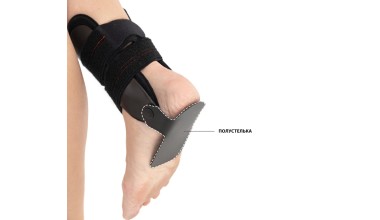 Ортез состоит из двух пластиковых пластин анатомической формы, соединенных снизу лентой. Эта лента регулируется по длине, так что устройство можно подогнать по ноге.