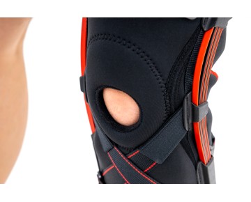 - Ортез стабилизирует коленную чашечку, разгружает сустав и связки