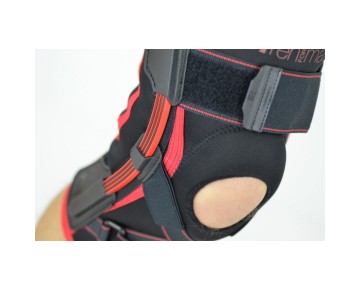 Два диагональных ремня, расположенные под наколенником, поддерживают переднюю крестообразную связку, а пружинящие листовые ребра жесткости снимают излишнюю нагрузку с сустава. Специальное кольцо стабилизирует коленную чашечку и снимает нагрузку с пателлофеморального сустава. Ортез AS-SK / A - идеальное решение для активных людей (в том числе спортсменов), которым необходима стабилизация сустава во фронтальной плоскости с сохранением естественного диапазона движений. Ортез изготовлен из материала ActivePren™ и ActiveSpace™.