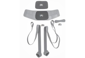Ремни изготовлены из тонкой резинки с сильной компрессией, с ограниченной эластичностью, не вызывающей эффект жгута. Эластичная петля для ног подстраивается под любой размер. Деротационные ремни покрыты изнутри безопасным для детей силиконом, что предотвращает их скольжение во время использования Крепление-липучка с возможностью обрезки для точной регулировки длины ремней.
