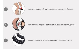 - Предусматривает защиту от смещения вперед большеберцовой кости, уменьшает напряжение связок, снижает время пребывания сустава в опасном положении максимального выпрямления