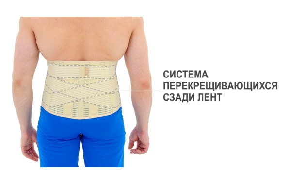 - В дополнении к шинам и ребрам корсет имеет специальные перекрещивающиеся сзади ленты. Ленты плотно прижимают шины к поясничному лордозу, усиливая разгрузочный эффект