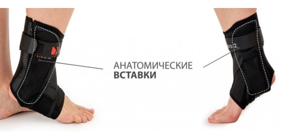 - Изделие снабжено текстильной лентой, прижимающей пластины к конечности и улучшающей стабилизацию сустава. Такая конструкция защищает голеностоп от вывиха, не ограничивая его функциональность.