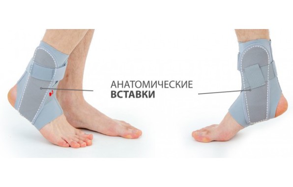 - Анатомическая форма и пластиковые вставки позволяют надежно защитить голеностопный сустав от вывиха