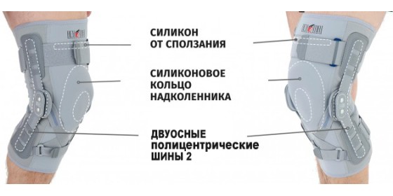 - Силиконовое кольцо надколенника позиционирует ортез и оказывает микромассажное действие