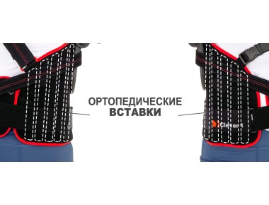 Для фиксации изделия на теле пациента служит двойной ключично-грудной ремень с передней скобой, благодаря которой пациент легко может снять аппарат без необходимости повторной регулировки несущих ремней. Ремни же являются универсальными, их излишек можно отрезать.