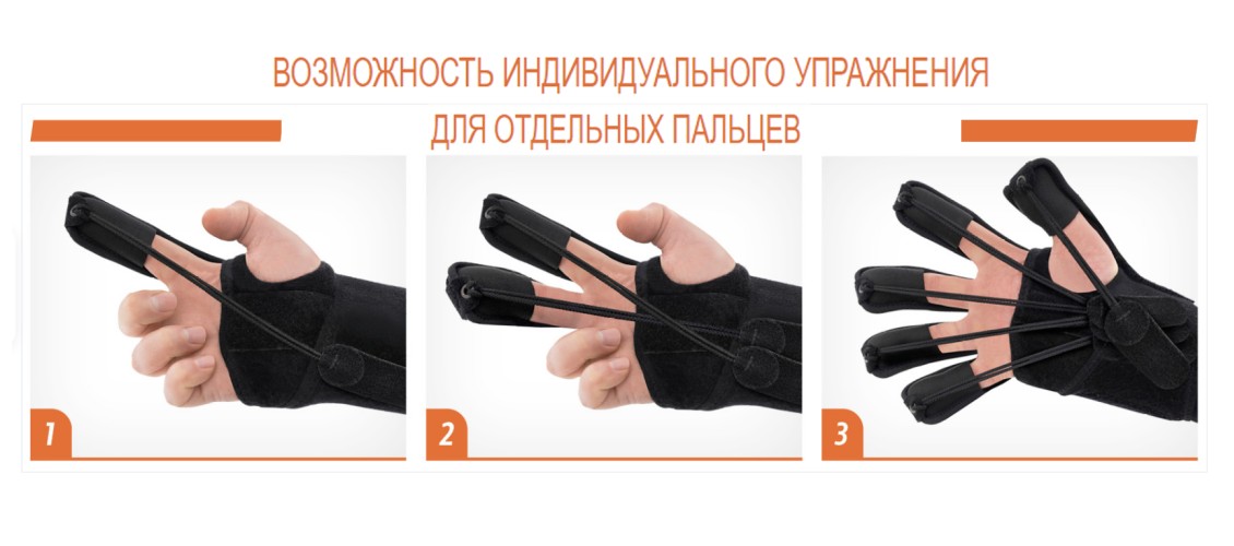 Терапевтический ортез для руки OKD-19 это инновационный продукт. Ортез с помощью специальной системы натяжителей, обхватывает пальцы и позволяет выполнять упражнения на усиление сгибателей/разгибателей кисти.