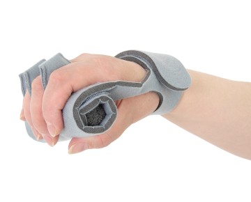 Ортез OKG-11 - отличное средство пассивного позиционирования для предотвращения спастического положения пальцев руки в случае инсульта или церебрального паралича. Ортез снабжен разделителем пальцев, который удерживает их в физиологичном положении. К ортезу прикреплен валик для ладони, который предотвращает сжатие руки и чрезмерное приведение большого пальца. Валик изготовлен из мягкого поролона, покрытого материалом- велкро и имеющего застежку-липучку, он обеспечивает индивидуальную адаптацию. Ортез имеет регулируемый ремень запястья, излишки которого легко отрезать, поэтому его могут успешно использовать как пациенты подросткового возраста, так и взрослые. Таким образом, неврологический фиксатор кисти OKG-11 предотвращает спастичность руки и подготавливает ее к функциональной повседневной деятельности.