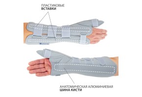 В изделии имеется ремень для стабилизации большого пальца, а также боковая шина с фиксатором, предназначенная для отведения пальца в сторону. Алюминий, из которого изготовлена шина, позволяет согнуть ее под нужным углом.