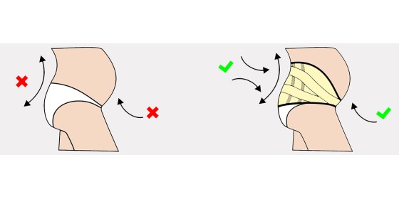 Бандаж изготовлен из эластичной ткани AirRubber, которая благодаря перфорации и односторонней эластичности легко вентилируется. Материал бандажа мягкий и приятный.