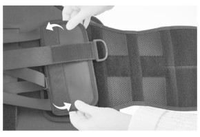 Также в задней части корсета находится система компрессии TapeLacing. С ее помощью, пользователь может регулировать уровень компрессии ортеза, силу воздействия на тело. Регулировка плавная, постепенная. Система работает при помощи металлических пряжек, ремней и застежек на липучках велкро. Широкий неэластичный ремешок по окружности является дополнительным стабилизирующим элементом, обеспечивающим регулируемую компрессию в пояснично-крестцовом отделе позвоночника.