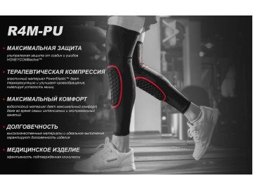 Ортез колена R4M- PU - профессиональное медицинское устройство, предназначенное для активных людей. Он защищает ткани голени и обеспечивает комфортную терапевтическую компрессию. Изготовлен из удобного ультратонкого материала PowerElastic ™ и оснащен специальной термоформованной вставкой из сотовой пены под названием HONEYCOMBactive ™. Эта вставка защищает мягкие ткани и кости от травм в результате удара или падения.