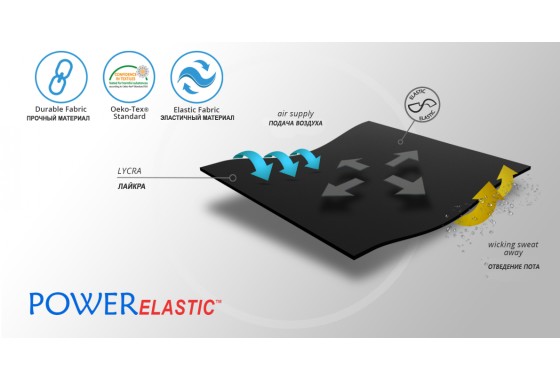 Компрессионное воздействие материала PowerElastic ™ улучшает кровообращение, насыщая кислородом мышцы во время физической активности, тем самым снижает количество отложенного в тканях лактата и уменьшает воспаление и мышечную усталость. Это, в свою очередь, улучшает эффективность тренировок и самочувствие после тренировки.