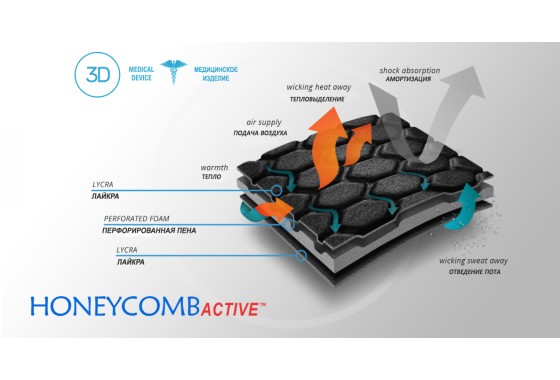 - Материал HONEYCOMBactive ™ предотвращает появление царапин, ссадин и ушибов