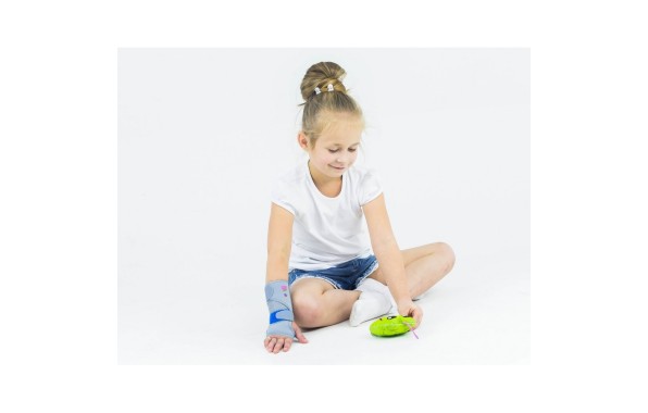 Детский ортез запястья EB-N-01 разработан для лечения травм лучезапястного сустава. Модель имеет вид полуперчатки, частично закрывающей ладонь и область предплечья. Дополнительные элементы - ортопедическая шина и эластичный ремень на липучках, обеспечивают добавочное ограничение подвижности сустава, не затрагивая пальцы.