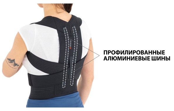 При необходимости алюминиевые вставки можно легко извлечь и использовать корсет без них. Корсет обеспечивает оптимальное позиционирование плечевого пояса и формирование правильной осанки. Нормализует мышечный тонус, вырабатывает стереотип мышечной памяти, разгружает грудной отдел.