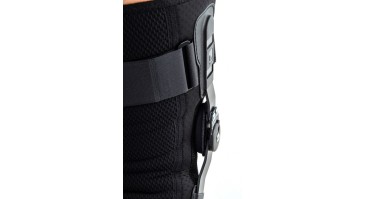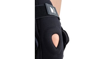 Ортез AM-OSK- Z/1R-01 с боковыми шинами 1R, разработан для восстановления коленного сустава после травм и операций. Точная регулировка позволяет эффективно лечить различные повреждения сустава и коленных связок. Он имеет два независимых набора усиливающих ремней на липучках и две боковые шины из углеродного волокна с шарнирами, регулирующими подвижность сустава с шагом 15°. Эта точная настройка облегчает процесс реабилитации. Система шин в ортезе выполнена в форме буквы X, что позволяет ей идеально прилегать к конечности. Закрытый ортез колена изготовлен из перфорированной пенки c хлопковой подкладкой. Внутренняя перфорация материала способствует отводу влаги и тепла от кожи, предотвращая перегрев. Анатомическое кольцо на коленную чашечку из пенки с противогрибковыми свойствами максимально стабилизирует пателлофеморальный сустав и оказывает микромассажное действие.